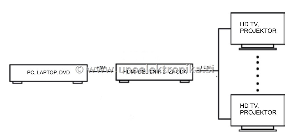 HDMI aktivni delilnik, 1 vhod / 2 izhoda (Full HD)